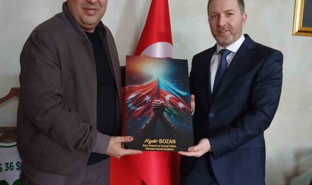 Azerbaycan Kars Başkonsolosu Zamin Aliyev ile Azerbaycan İstanbul Başkonsolosluğu Ticaret Temsilcisi Tamerlan Tağıyev, Kars Ticaret ve Sanayi Odası'nı ziyaret etti.