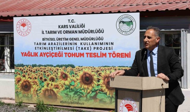 Kars'ta tarımsal üretimi çeşitlendirmek ve çiftçilere yeni gelir kapıları açmak amacıyla hayata geçirilen "Kars'ta Yağlık Ayçiçeği Ekiminin Yaygınlaştırılması Projesi" kapsamında tohum dağıtımı gerçekleştirildi.