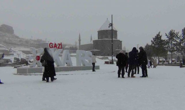 Kars'ta kar yağışı vatandaşları sokaklara döktü. Kars Kalesi'nin altında bulunan Bedesten Bölgesi'ne gelen vatandaşlar, burada sevdikleriyle birlikte karın keyfini çıkardı. Bazı vatandaşlar ise çalan müzik eşliğinde halay çekip oynadı. Kentte kar yağışı etkisini sürdürüyor.