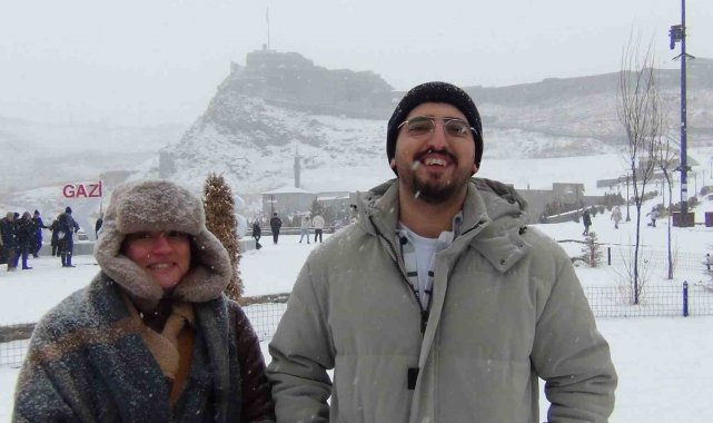 Kars Kalesi'nin gezdiklerini ifade eden vatandaşlar, tarihi doku ve kar yağışının çok güzel olduğunu belirttiler.