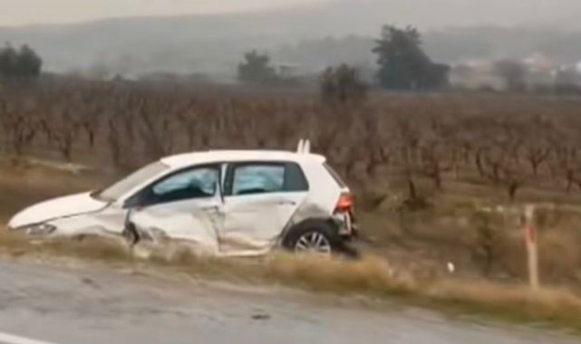 Denizli'nin Buldan ilçesinde seyir halindeki araç kontrolü kaybetmesi sonucu karşı şeritteki seyir halindeki araca çarptı. Çarpma sonucu yol kenarındaki tarlaya savrulan iki araç hurdaya döndü.