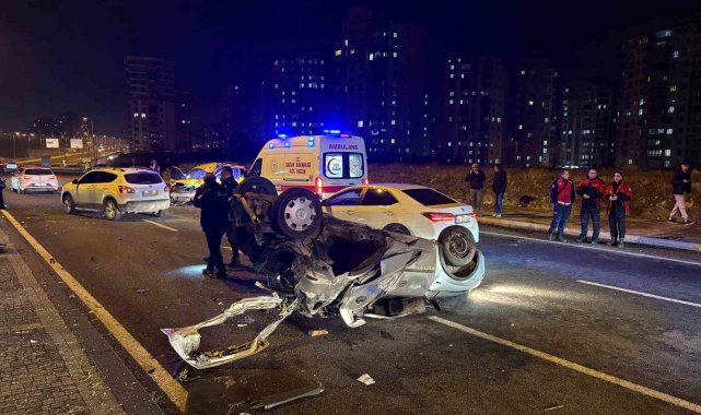 Kayseri'nin Melikgazi ilçesinde kontrolden çıkarak karşı yola geçen otomobil, taksi ile çarpıştı. Kazada araçlar hurdaya dönerken, 1'i ağır 3 kişi yaralandı.