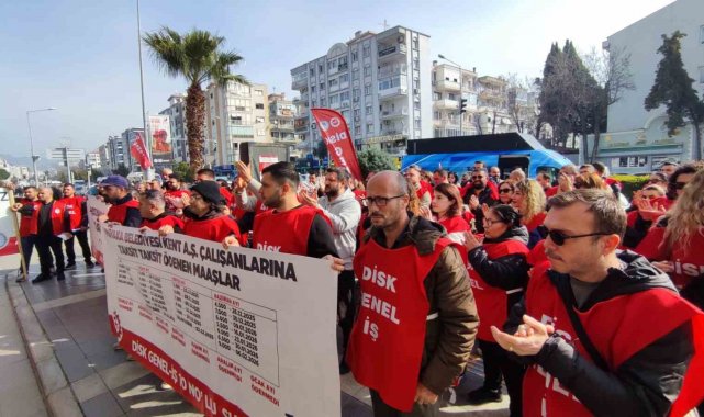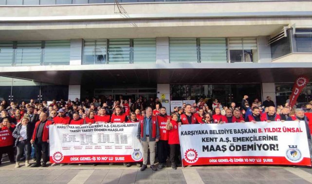 Karşıyaka Belediyesi bünyesindeki Kent A.Ş.'de görev yapan işçiler, ödenmeyen ücretleri ve çalışma şartlarındaki belirsizlikler nedeniyle protestolarını sürdürüyor. DİSK Genel-İş 10 Nolu Şube öncülüğünde belediyenin ana hizmet binası önünde toplanan işçiler, Belediye Başkanı Yıldız Ünsal ile yapılması planlanan görüşmenin iptal edilmesine tepki göstererek basın açıklaması yaptı.