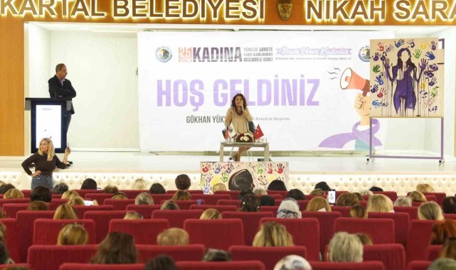 Kartal Belediye Başkan Yardımcısı Dr. Dilek Kars, konuşmasında kadına yönelik şiddetin toplumun tüm katmanlarını etkileyen ağır bir insan hakları ihlali olduğunu belirterek, "Hiçbir kültür, hiçbir düşünce biçimi şiddeti meşrulaştıramaz. Kadına yönelik şiddetin her türüne karşı sıfır toleransla mücadele ediyoruz. Bir kadının güçlenmesi bir toplumun geleceğini güçlendirir." dedi. Belediye Başkanı Gökhan Yüksel'in selamlarını ileten Kars, kadınlara her zaman ulaşılabilir olduklarını söyledi.