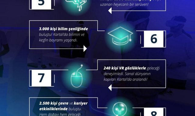 Kartal'da 3 bin kişinin katıldığı bilim şenliğinde ise çocuklar, aileler ve bilim meraklıları bir araya geldi. 2 bin 500 kişi de çevre ve kariyer etkinliklerinde buluşarak hem doğayı korumanın hem de geleceği inşa etmenin yollarını tartıştı.