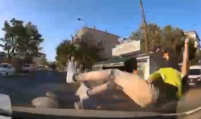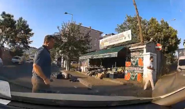 Kartal'da seyir halindeki otomobil ile motosiklet çarpıştı. Kazada, motosiklet sürücüsü havaya savrularak yere düştü. O anlar araç kamerasına yansıdı.