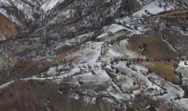 Erzincan'ın Refahiye ilçesinde bir kartal, çekim için kullanılan droneyi havada kaparak dağın zirvesine bıraktı.