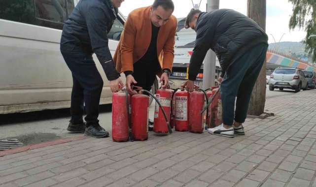 İş yerindeki yangın söndürme tüplerini değiştirmeye gelen müşterilerden işletmeci Cemil Kılıç, "İş yerlerimiz var. Yangın tüplerimiz boşalmıştı. Dolum işlemleri için geldik. 9 adet tüpümüzü doldurduktan sonra götürüp işletmelerime bırakacağım. Acil bir durumda kullanacağız" ifadelerini kullandı.