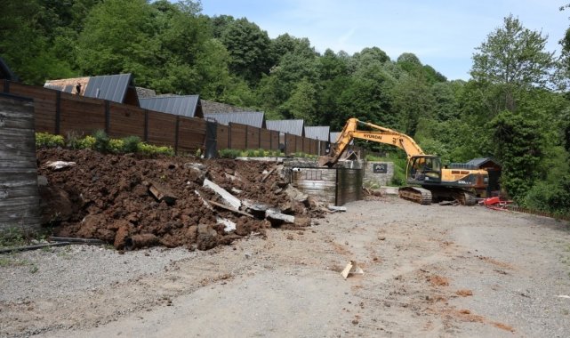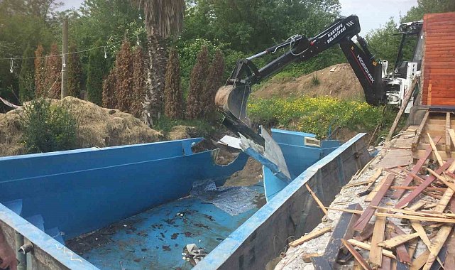 Kartepe'de imar mevzuatına aykırı inşa edilen 14 ruhsatsız bungalov yıkıldı.