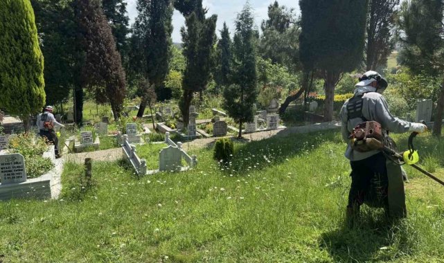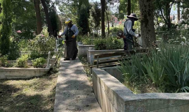 Kartepe'de Kurban Bayramı öncesinde mezarlıklarda ot biçme ve çevre düzenlemesi gerçekleştirildi.