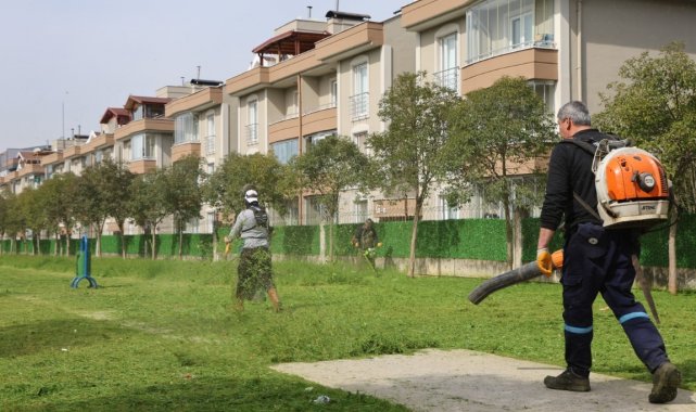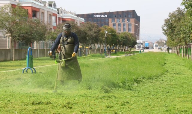 Kartepe'de belediye ekiplerince yeşil alanlarda yabani ot ve diken temizliği gerçekleştiriliyor.