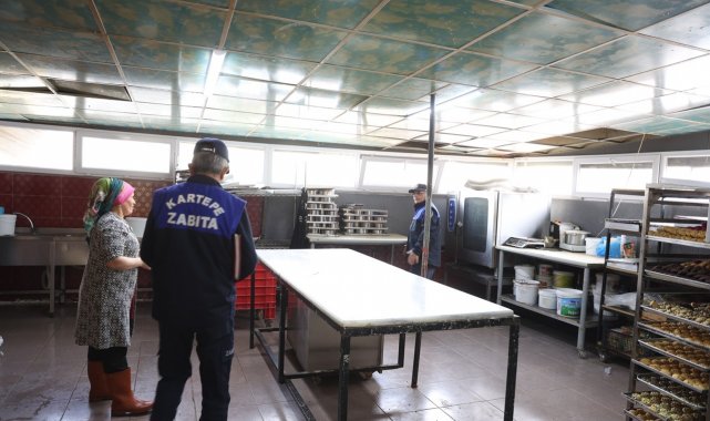 Kartepe'de zabıta ekipleri Ramazan Bayramı öncesinde tatlı üretimi ve satış yapan işletmelere yönelik denetimlerini sürdürüyor.