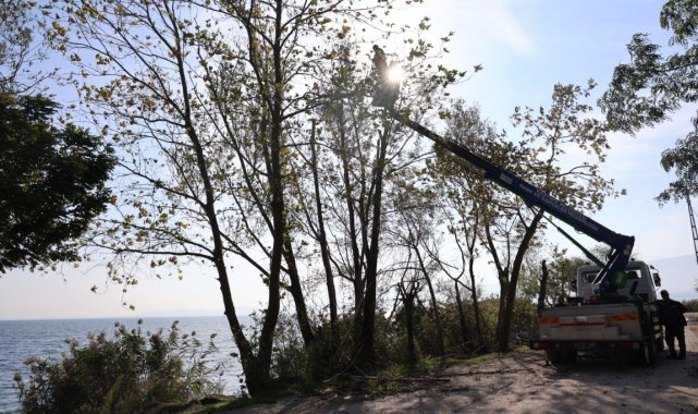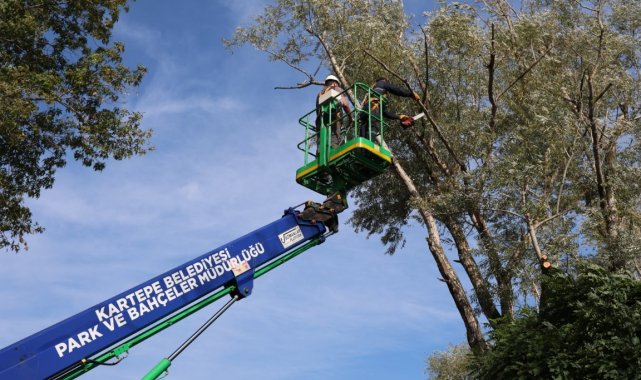 Kartepe Belediyesi Park ve Bahçeler Müdürlüğü ekipleri, ilçedeki yeşil alanlarda ağaç budama çalışması yapıyor.
