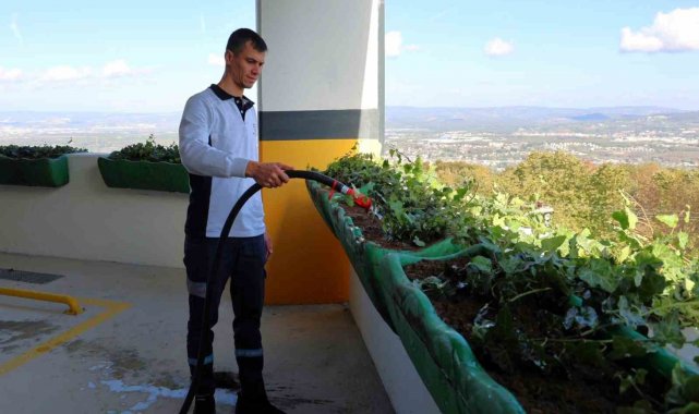 Öte yandan Park ve Bahçeler Dairesi Başkanlığı ekipleri, otoparkın dış cephesinde estetik bir görünüm oluşturmak için çalışma yürüttü. Beton yapının soğuk görüntüsünü yumuşatmak ve doğayla uyumlu hale getirmek amacıyla binanın çevresine 192 adet hedera sarmaşığı dikildi.
