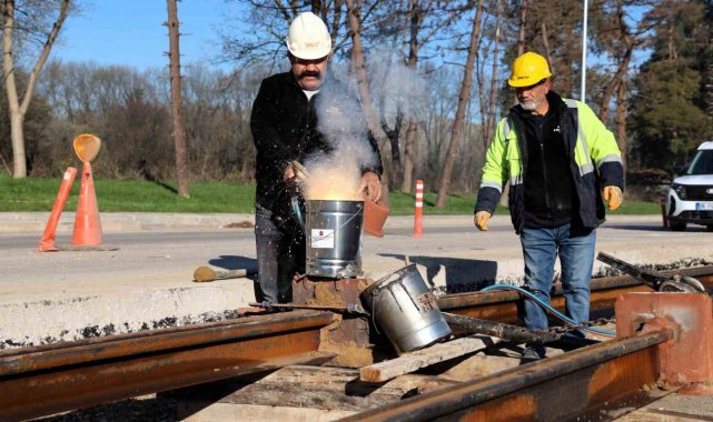 Kartepe Tramvay Hattı'nda raylar kaynak ile birleşiyor