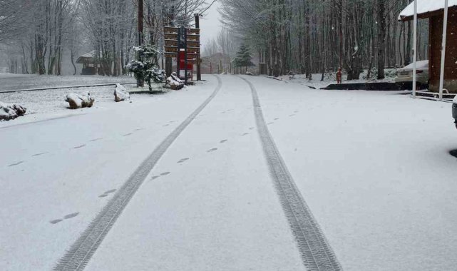 Kocaeli'nin Kartepe ilçesinin yüksek kesimlerine lapa lapa kar yağıyor.
