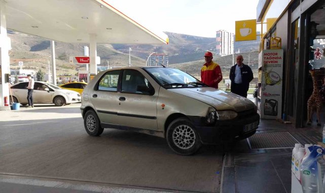 Malatya'da bir akaryakıt istasyonunda sıra nedeniyle kasiyerle tartışan sürücü, aracını iş yeri çalışanlarının üzerine sürerek istasyona girdi.