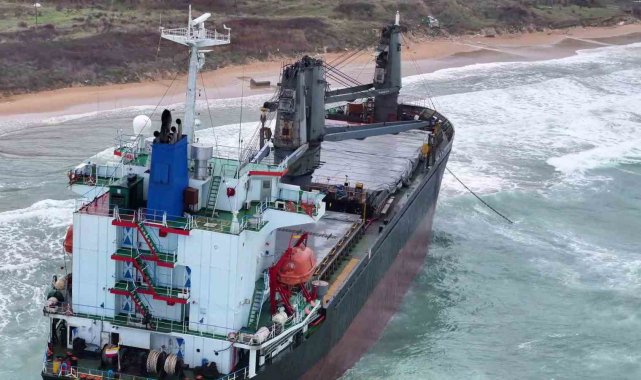 Kastamonu açıklarında vurulan ve Sarıyer'de karaya oturan gemi havadan görüntülendi