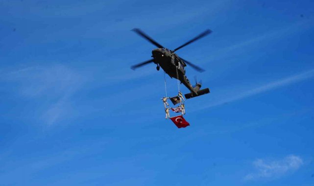 Törende uzman erbaşlar tarafından köpek unsuru, tüfekli hareketler ve yakın dövüş gösterisi, katılımcılar tarafından ilgiyle izlendi. Ardından uzman erbaşlar tarafından kuleden iniş yapıldı. Kuleden iniş yapan komandolar, açtıkları Türk bayrağı ile davetlilerden büyük alkış aldı. Törende helikopter ile de gösteri yapıldı. Helikopterden sarkan komandolar, Türk bayrağı ile birlikte Türkiye Cumhuriyeti'nin kurucusu Mustafa Kemal Atatürk ve Cumhurbaşkanı Recep Tayyip Erdoğan'ın da resminin olduğu bayrakları açarak sundukları gösteri, büyük beğeni topladı.