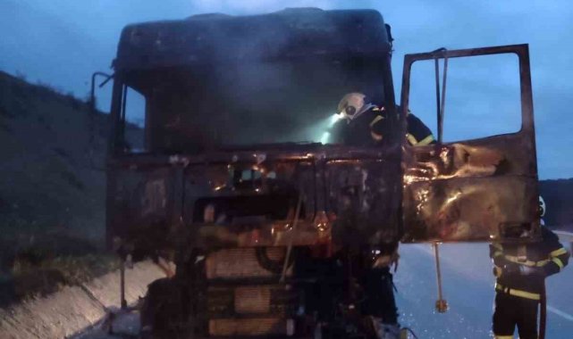 Kastamonu'nun Tosya ilçesinde seyir halindeki tırda yangın çıktı. Yangın, tırın dorsesine sarmadan itfaiye ekiplerince söndürüldü.