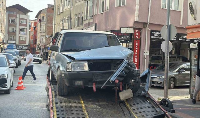 Kastamonu'da çarpışan iki otomobil, savrularak önce park halindeki araçlara, ardından iş yerlerinin duvarına çarparak durabildi. Kazada 1 kişi yaralandı.