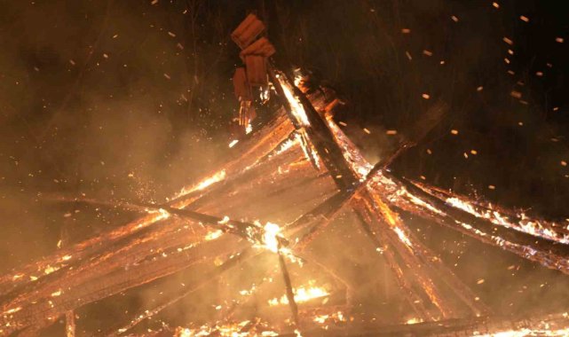 Kastamonu'da çıkan yangında 1 ev ve 2 samanlık tamamen yanarak küle dönerken, 2 evde de maddi hasar oluştu.