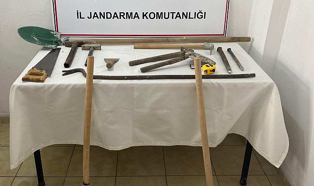 Şüphelilerin kazı yaptığı alanda yapılan aramalarda, kazı malzemeleri ele geçirildi. Olayla ilgili gözaltına alınan şahıslar, işlemlerinin ardından adliyeye sevk edildi.