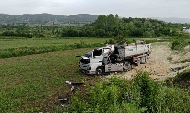 Devrilen kamyon çekici yardımıyla bulunduğu yerden kaldırılırken, jandarma ekipleri kazayla ilgili inceleme başlatıldı.