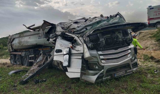 Kastamonu'da devrilen hafriyat kamyonunun sürücüsü yaralandı