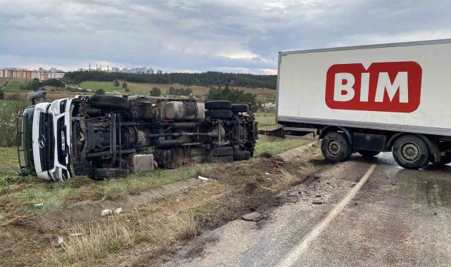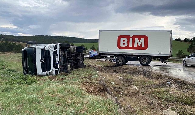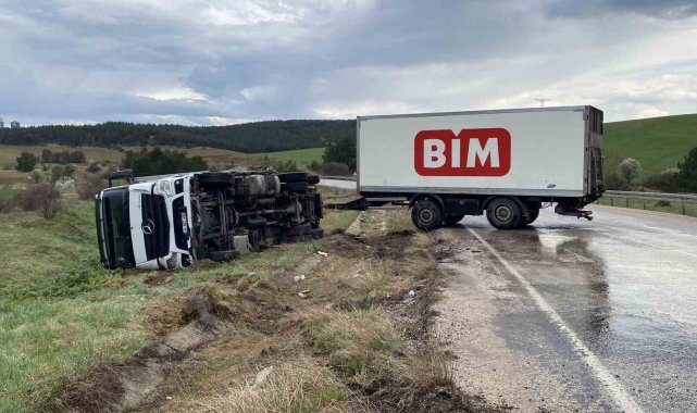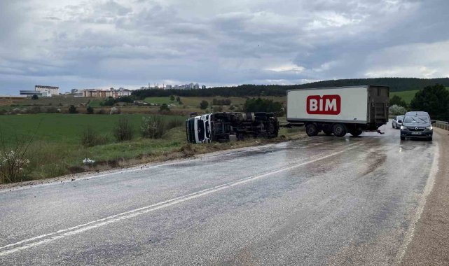 Kastamonu'da BİM firmasına ait kamyonun devrilmesi neticesinde 1 kişi yaralandı.
