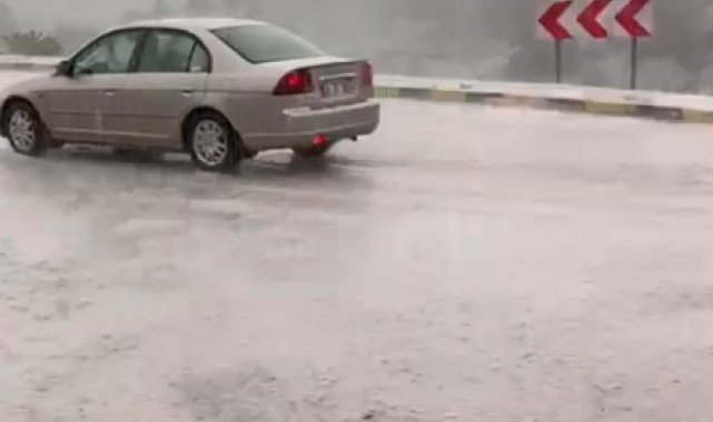 Kastamonu'da dolu etkili oldu, sürücüler köprü altına girerek araçlarını korumaya çalıştı