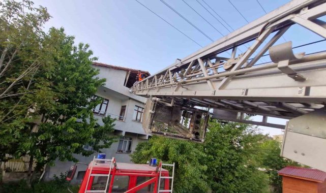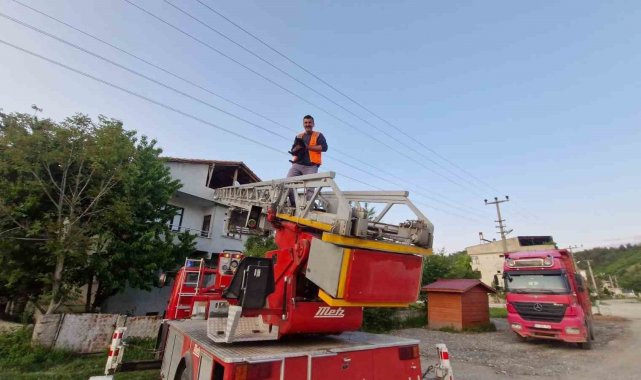 Kastamonu'da evin çatısında mahsur kalan kediyi itfaiye ekipleri kurtardı