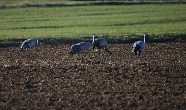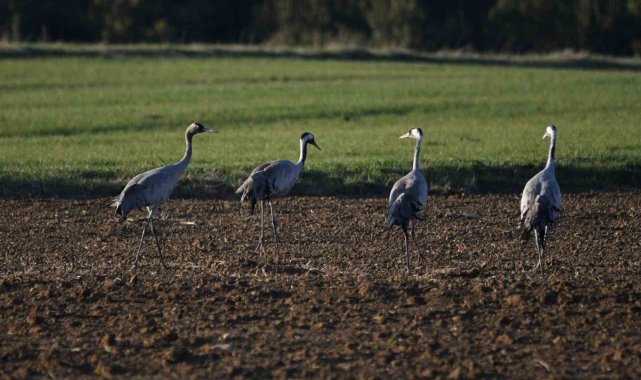 Bahar göçü yolcuğuna çıkan ve doğanın en sadık kuşları olarak bilinen turnalar, Kastamonu'da mola verdi. Genellikle sürü halinde göç yolculuğuna çıkan turnalar, bu sefer aile olarak objektiflere yansıdı. Kastamonu'nun sulak alanlarında mola veren iki erişkin ve iki yavrusundan oluşan grup, beslenirken ve dinlenirken fotoğraflandı. Birbirlerinden bir an olsun ayrılmayan turna ailesi, ebeveynlerin yavruları aralarına alarak sergilediği korumacı tavır, yaban hayatının en etkileyici dayanışma örneklerinden birini gözler önüne seriyor.