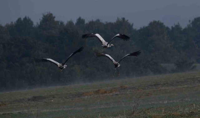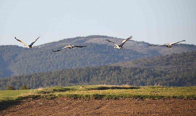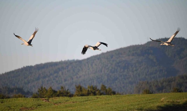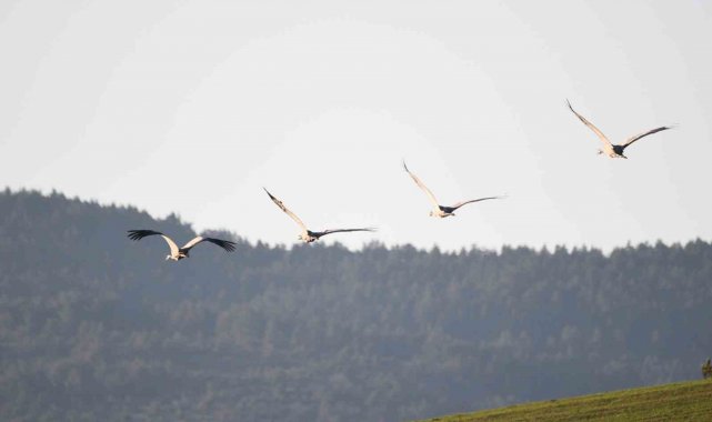 Kastamonu'da görsel şölen: Turna ailesi göç yolunda görüntülendi