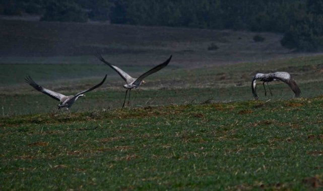 Baharın gelmesiyle göç eden turnalar, Kastamonu'nuda mola verdi. Aile bağlarının gücüyle tanınan turnalar objektiflere yansıdı.