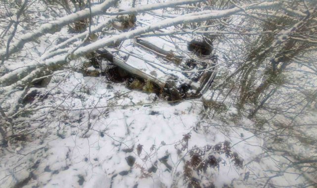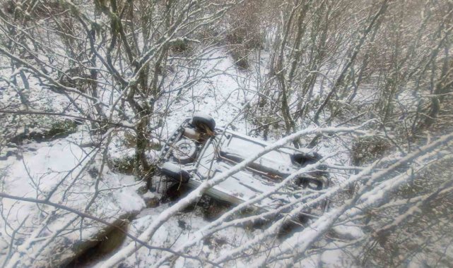 Kastamonu'nun Hanönü ilçesinde buzlanan yoldan çıkarak yaklaşık 20 metrelik şarampole yuvarlanan hafif ticari aracın sürücüsü yara almadan kurtuldu.