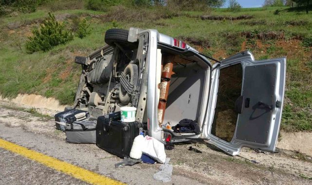 Kastamonu'da virajı alamayan hafif ticari aracın refüje çarptıktan sonra takla attı. Kazada 4 kişi yaralandı.