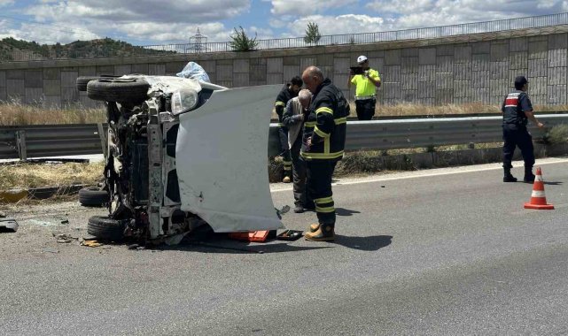 Kastamonu'nun Tosya ilçesinde hafif ticari aracın refüje çarparak yan yattığı kazada 2 kişi yaralandı.