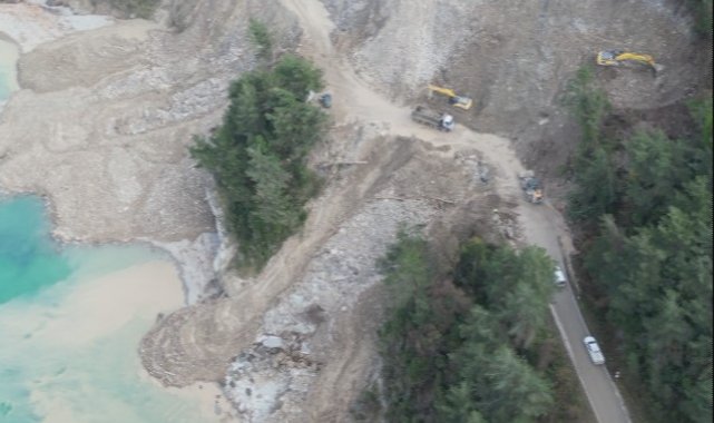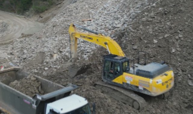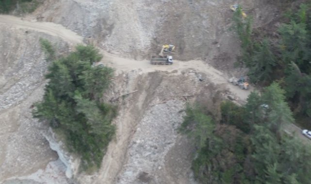 Karayolları 15. Bölge Müdürlüğü ekiplerince yolun tekrar ulaşıma açılabilmesi için başlatılan çalışmalar aralıksız sürüyor. Ekipler, kayan toprak kütlesini temizlerken, ayrıca zemin bölgesini sağlamlaştırarak yeni yol açıyor.