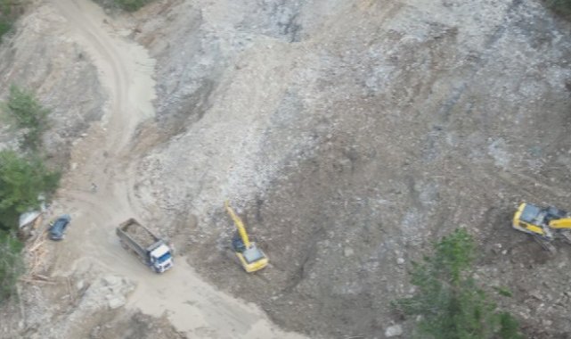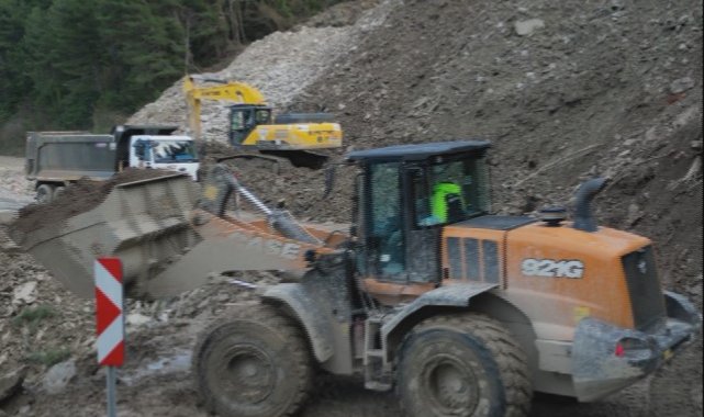Kastamonu'da heyelan nedeniyle ulaşıma kapanan yolda çalışmalar sürüyor