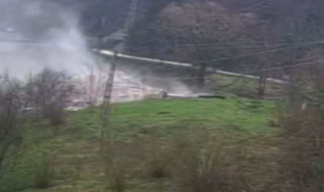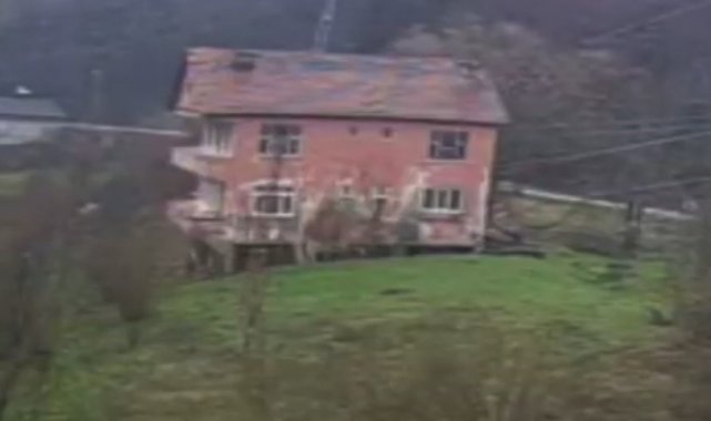 Kastamonu'nun Cide ilçesinde heyelan riski sebebiyle tahliye edilen iki katlı evin çökme anı güvenlik kamerasına yansıdı.