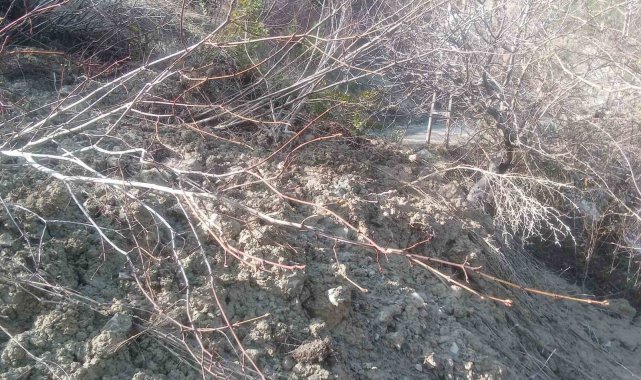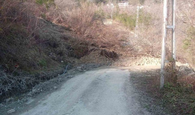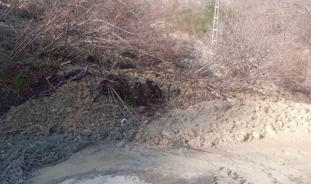 Kastamonu'nun Çatalzeytin ilçesinde hava sıcaklıklarının artış göstermesiyle birlikte eriyen kar suları sonucu oluşan heyelan sebebiyle köy yolu 4 metre aşağıya kaydı.