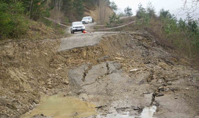 Kastamonu'da heyelan sebebiyle yol göçtü, köylerin birbirine olan bağlantısı kesildi