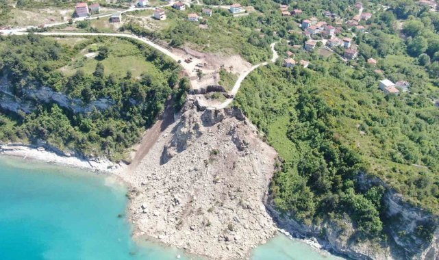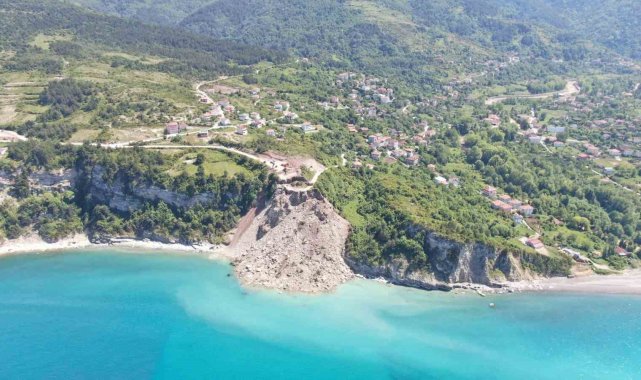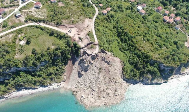 Kastamonu'da heyelan: Yoldan kopan kütle, denizle birleşti