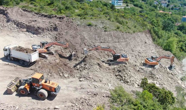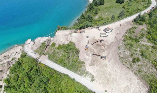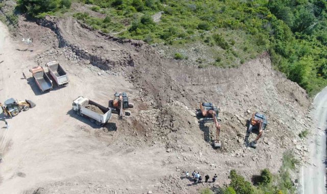 Ekiplerin heyelan bölgesinde yürüttüğü çalışmaları Karayolları 15. Bölge Müdürü Alpaslan Eşlik de yerinde inceledi.