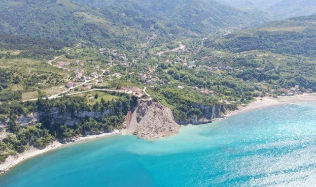 Kastamonu'da meydana gelen heyelan sebebiyle Cide-İnebolu karayolu ulaşıma kapandı. Yoldan kopan toprak kütlesi, Karadeniz ile birleşti.
