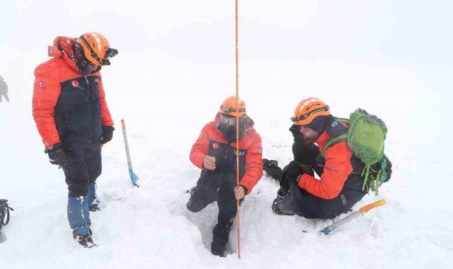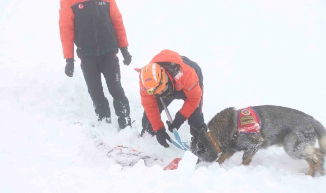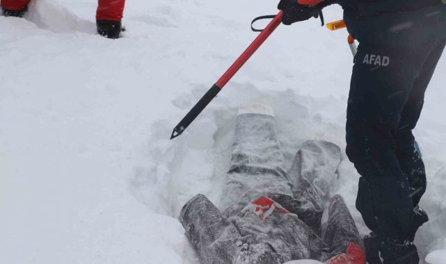 Senaryo gereği çığ düşmesi sonucu kar altında kalan 12 kişinin yerini sondalama ve arama kurtarma köpeklerinin yardımıyla belirlendi. Ekipler, kısa sürede kar altından çıkardıkları 12 kişiyi kar motorlarıyla taşıyarak 112 Acil Sağlık personeline teslim etti. Çığ altında kalanların tamamının tahliyesinin ardından ekipler bölgeden ayrıldı.