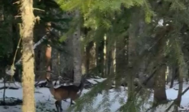 Kastamonu'nun Daday ilçesinde ormanlık alanda gezintiye çıkan karaca ailesi, karayoluna kadar indi. Yoldaki çukurda biriken sudan içen karacalar, araca aldırış etmeden etrafı sık sık kontrol etmesi dikkatlerden kaçmadı. Araçların varlığına aldırış etmeyen karacalar, cep telefonu kamerasıyla görüntülendi.