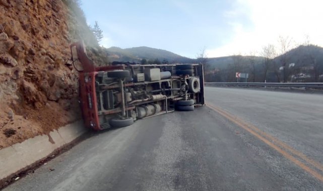 Kastamonu'nun Küre ilçesinde meyve ve sebze yüklü kamyon, sürücüsünün direksiyon hakimiyetini kaybetmesiyle devrildi. Kazada yaralanan olmadı.