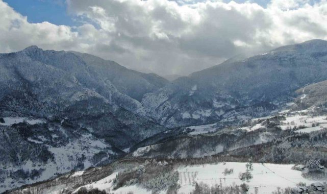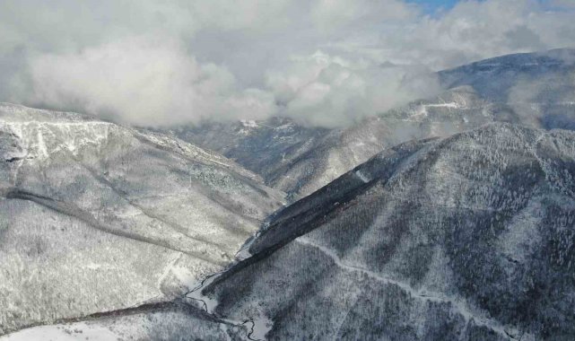 Kastamonu'daki Yaralıgöz Dağı'nın eteklerinde kalınlığı yer yer 1,5 metreyi bulan kar, kartpostallık görüntüler oluşturdu.